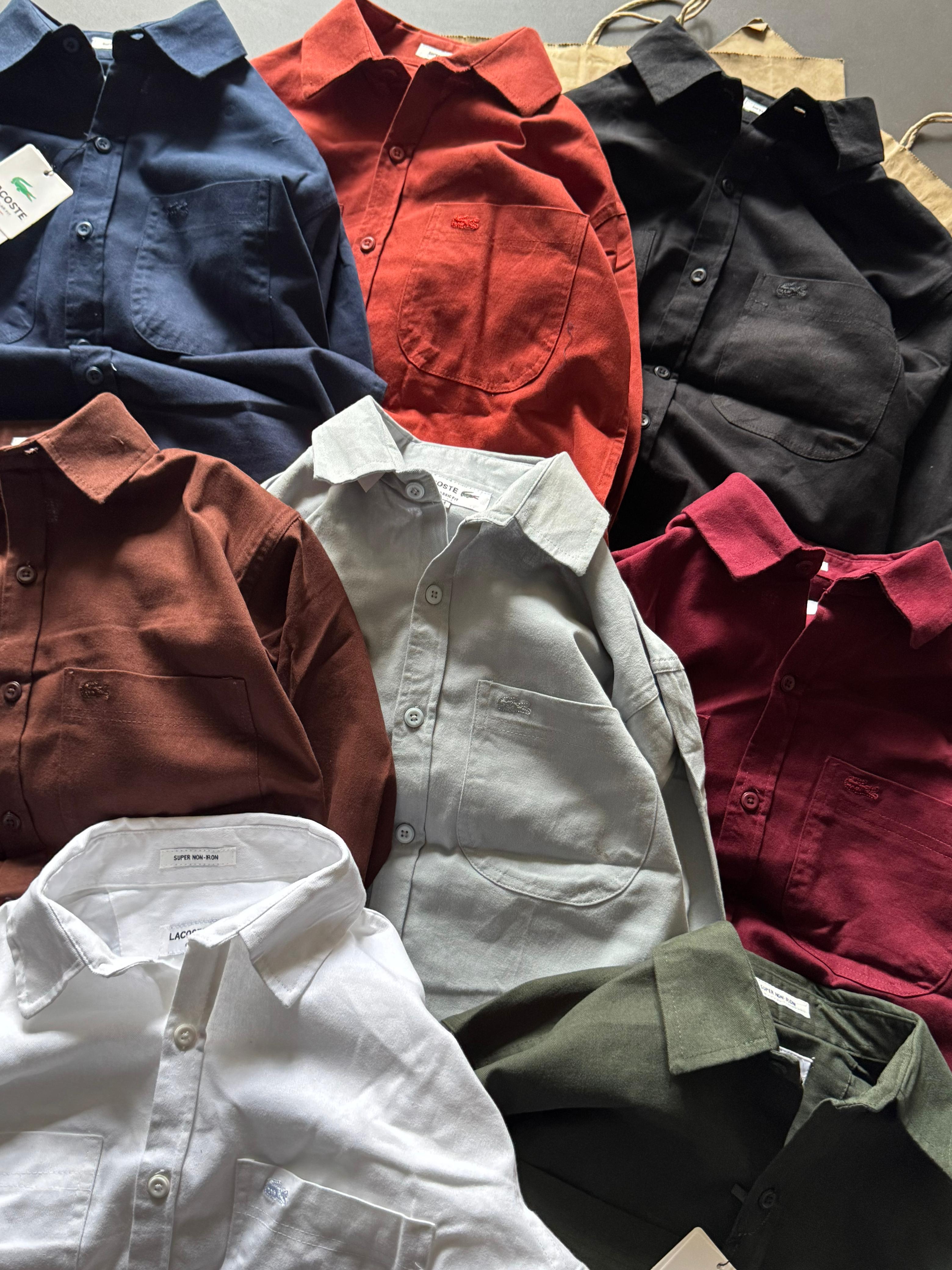Premium quality double pocket shirts Brand- Lacoste Fabric - 100% cotton drill Color - 8 Size- M L XL